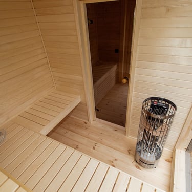 Badstugulv, vegger og tak: isolert med 10 cm PAROC-ull