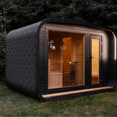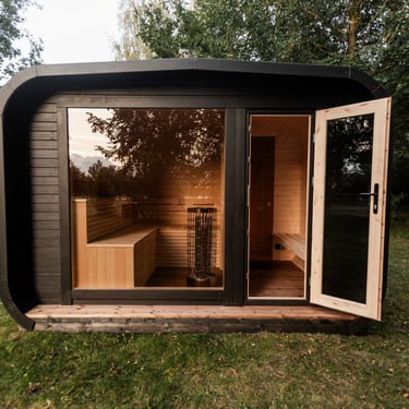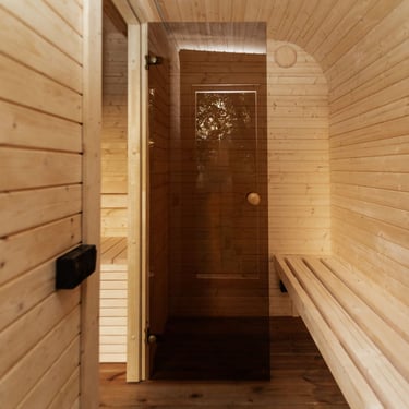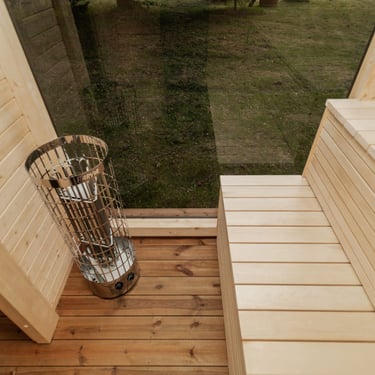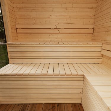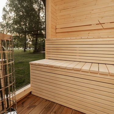 Badstuen er laget av gran eller termotre