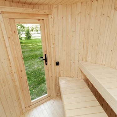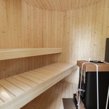 Badstuen er laget av gran eller termotre.
