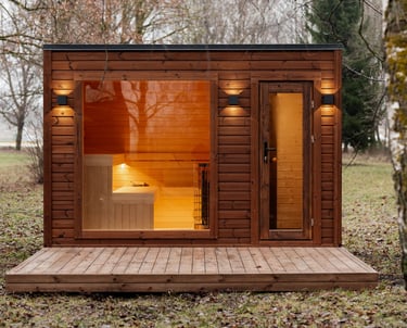 Dører: badstudør i glass, dør til forrommet i tre med glass
