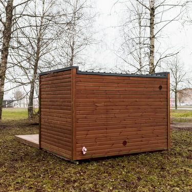 Gulv i badstuen: PVC-gulvbelegg med osp-gulvrister